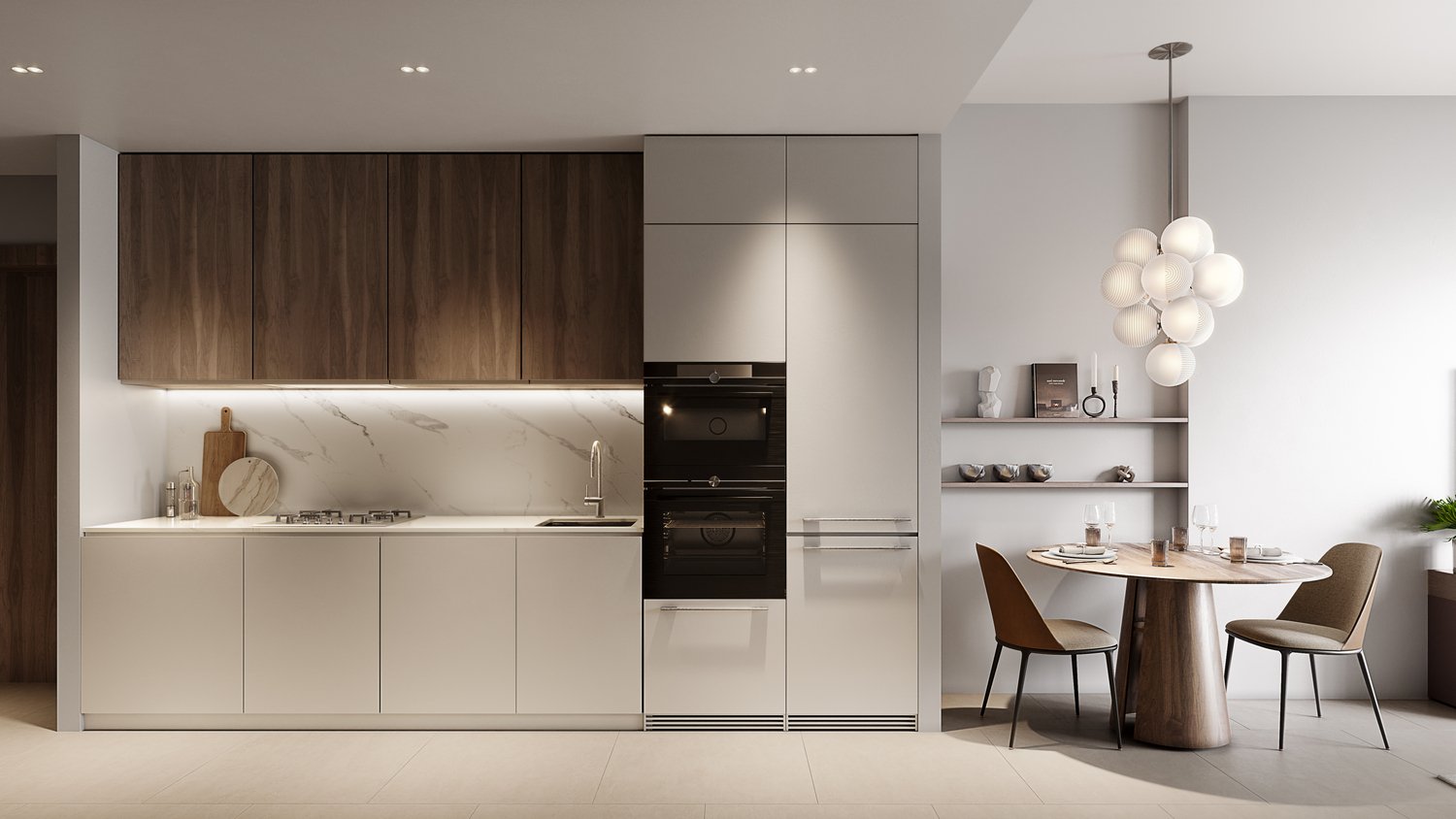 The residences feature modern finishing executed with high-quality materials, complemented by an integrated Smart Home System. Kitchens are fully equipped, offering a practical and contemporary setup suitable for daily use. All apartments are delivered fully furnished, providing a move-in-ready living experience with a cohesive interior style.