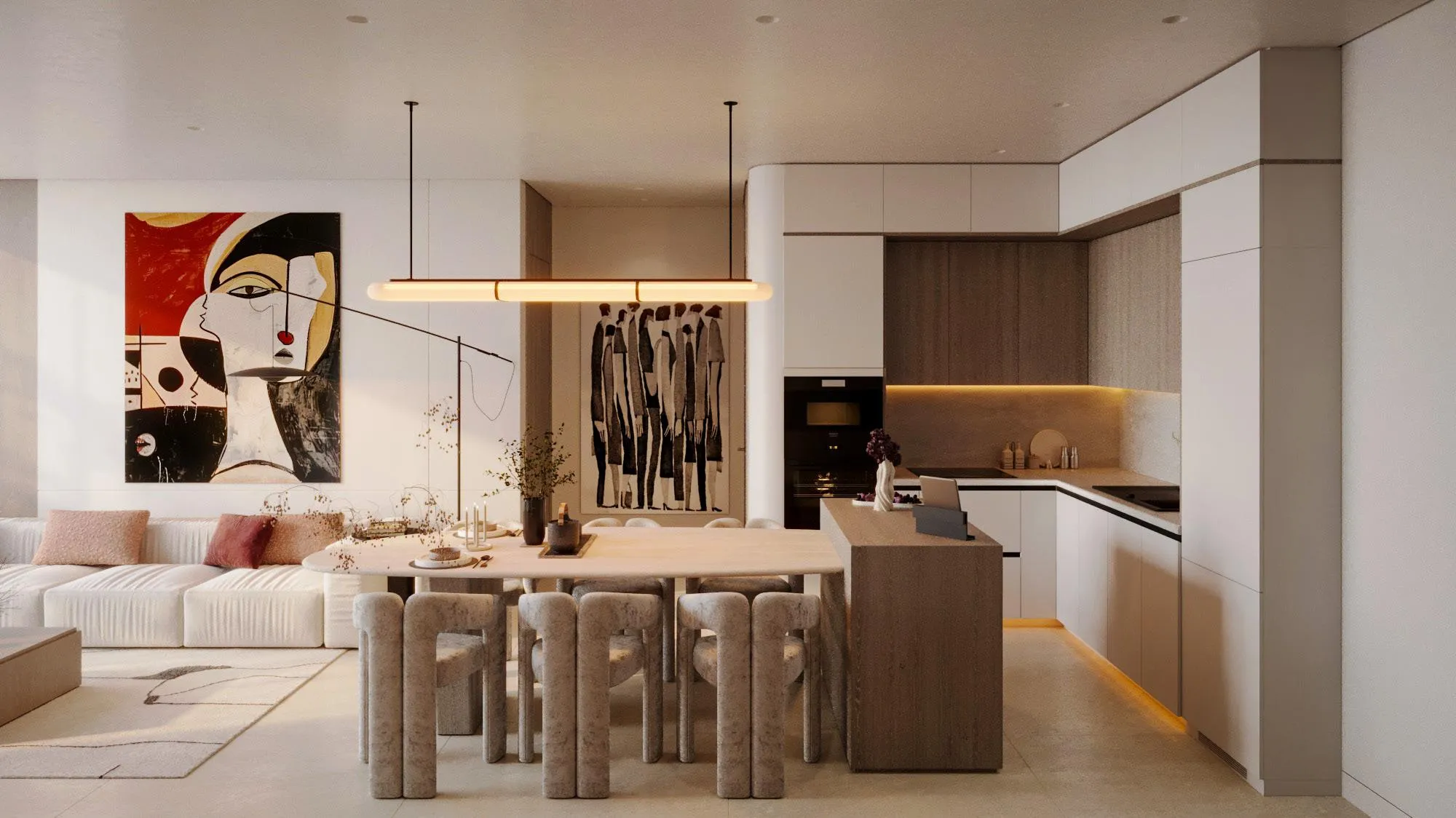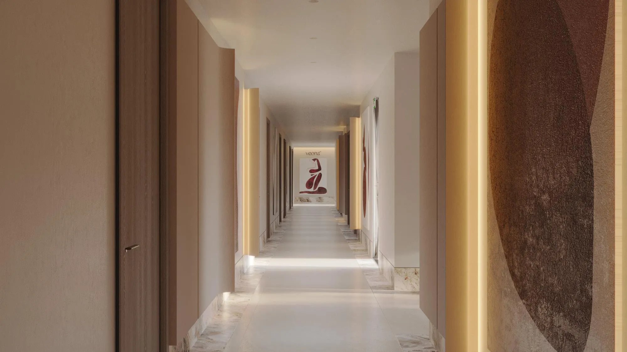 Inside, every residence is thoughtfully crafted to reflect harmony and purpose. From intimate studios to spacious family apartments, the interiors feature open layouts, refined finishes, and an abundance of natural light. Elegant lobbies and corridors set the tone for a home that feels both modern and timeless. Every surface, shadow, and texture speaks to Gutti’s philosophy of intentional design — where understated beauty meets everyday functionality.