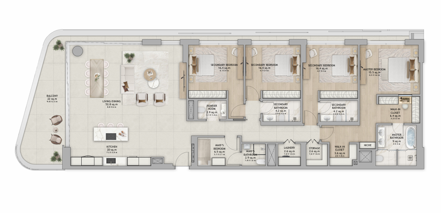 Fahid Island emphasizes wellness and outdoor recreation, featuring pristine beaches, jogging and cycling tracks, family-friendly parks, and dedicated fitness and sports zones. The community also offers retail and dining hubs, creating vibrant social and leisure spaces for residents. Sustainability is a core focus, with green landscaping, eco-friendly infrastructure, and smart planning integrated throughout the island.