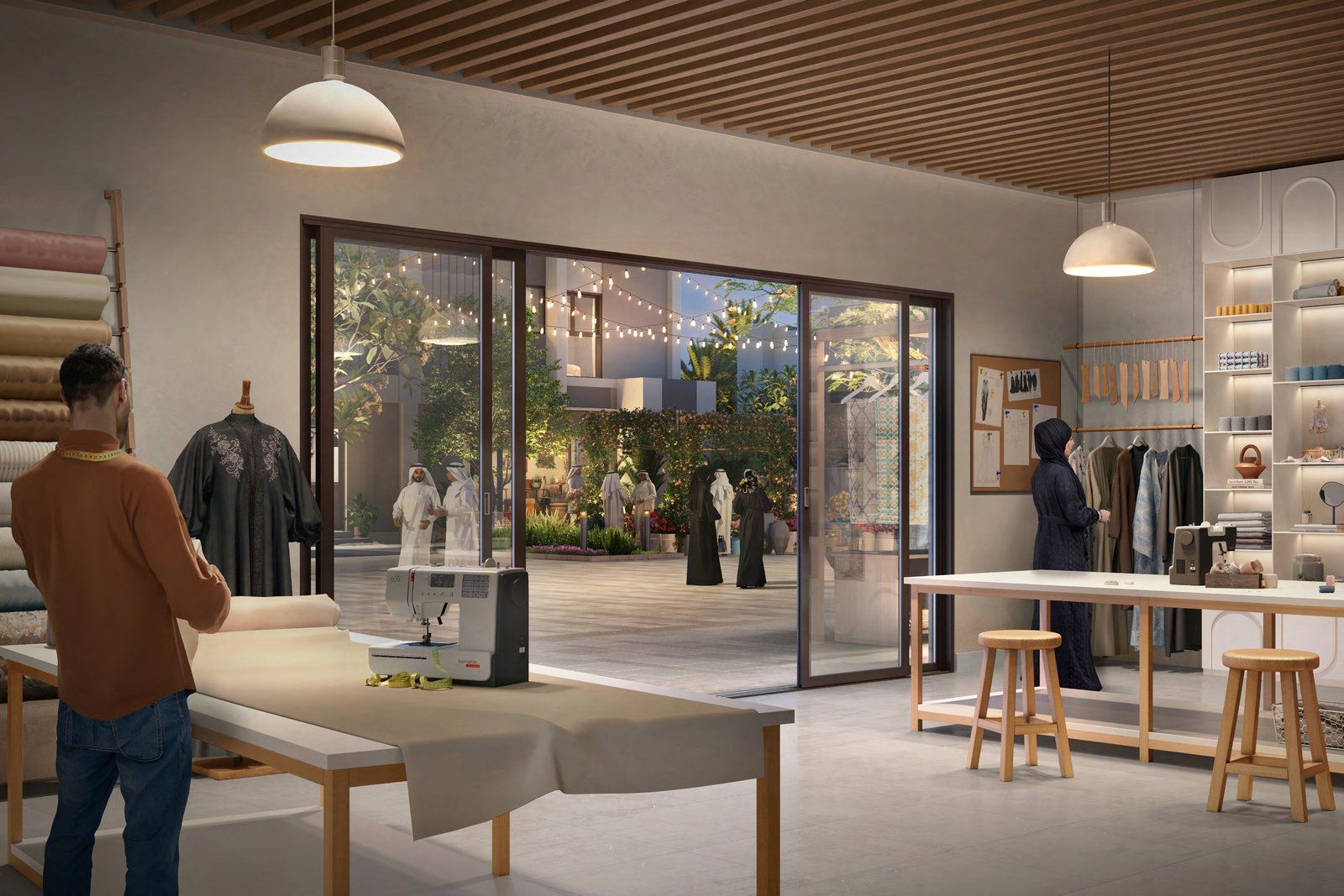 The development offers a variety of 3 and 4 bedroom townhomes, each designed with spacious layouts, elegant interiors, and multiple entrances for privacy. A standout feature is the 26 three-bedroom live/work homes—the first of their kind in the UAE. These unique residences feature commercial space on the ground floor with private living quarters above, giving entrepreneurs and creatives the freedom to operate cafés, studios, or small businesses from home.