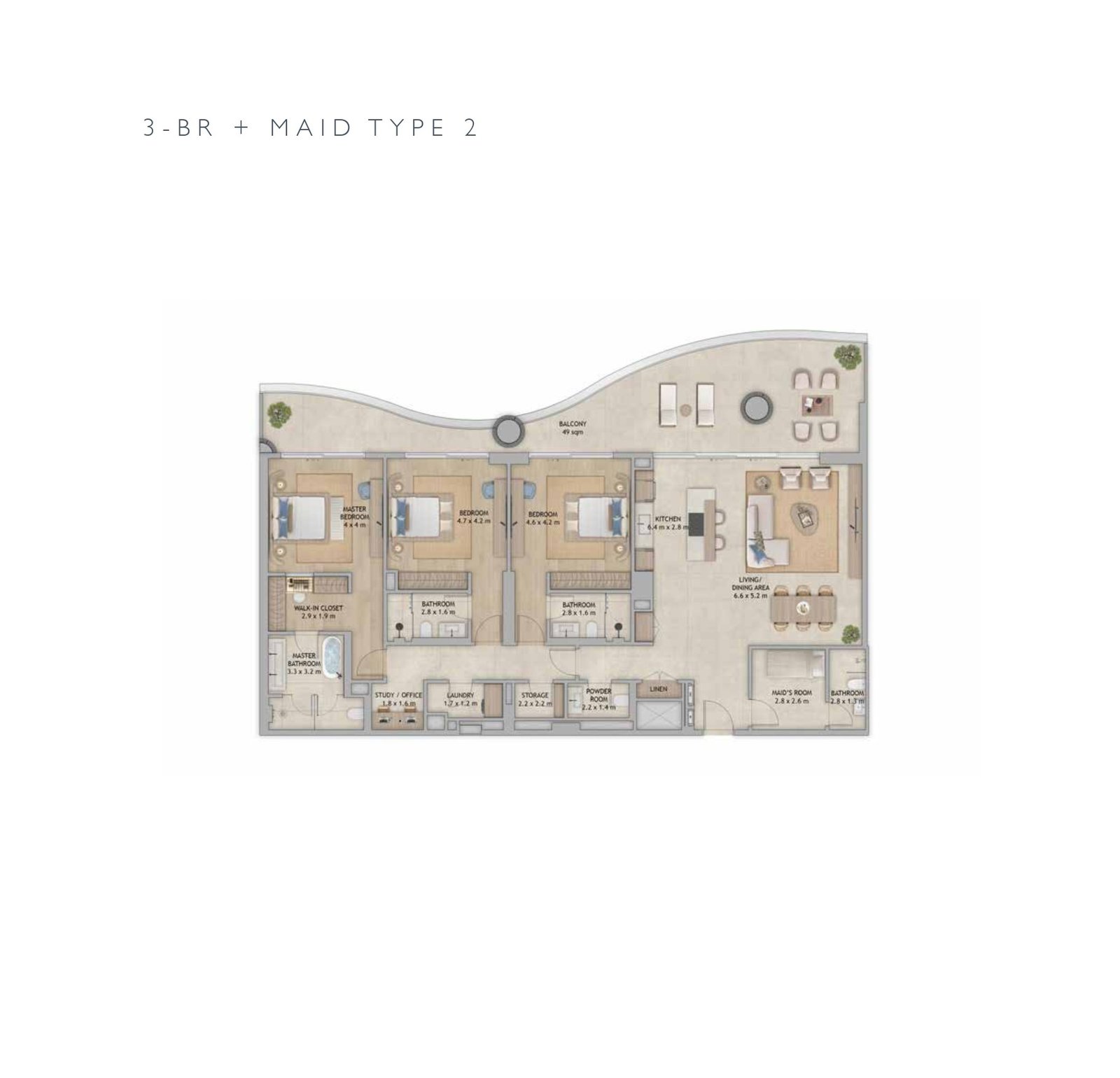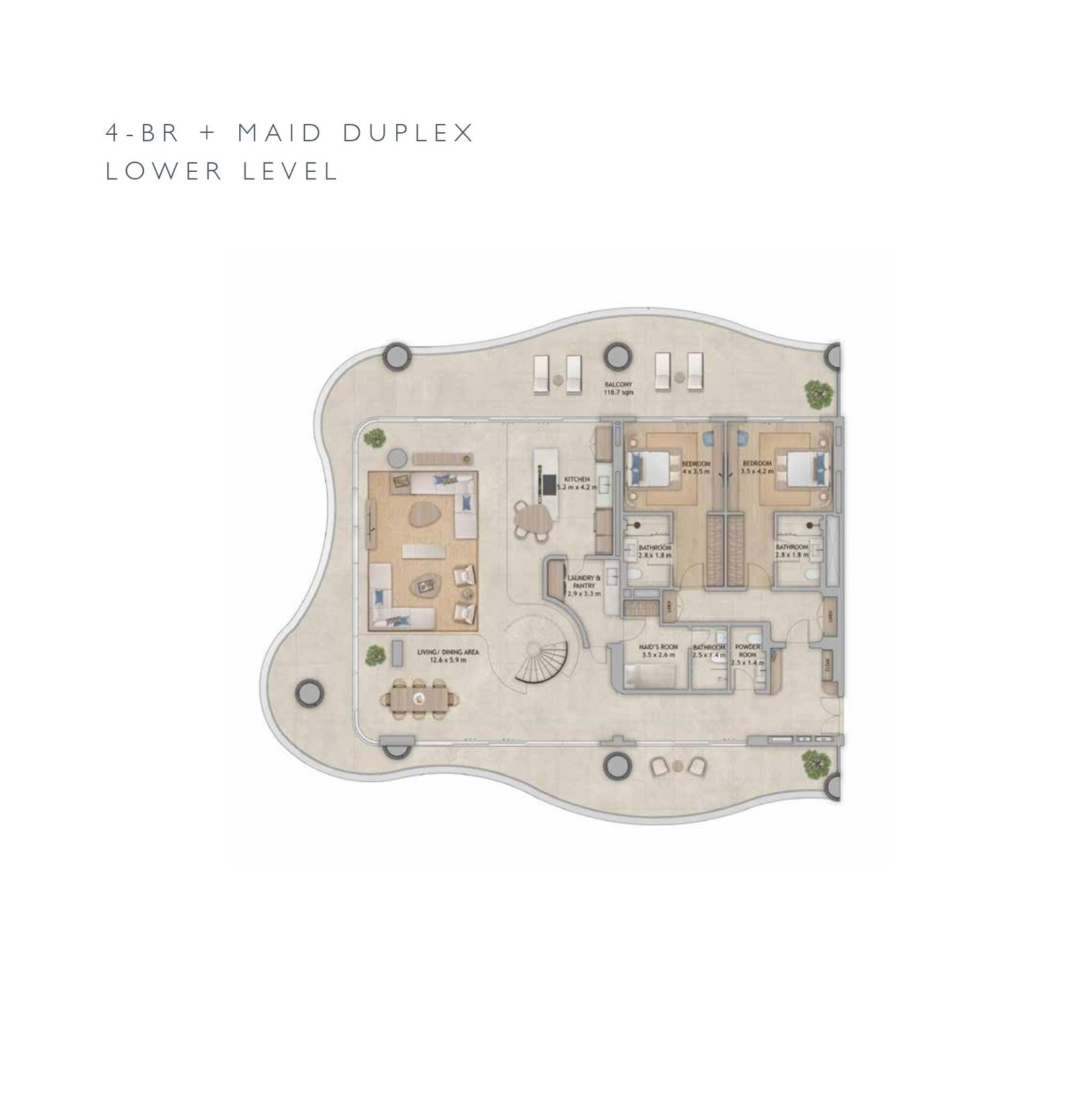 Areas begin from around 809 sq ft (104 m²) for the smaller units, extending up to 8,071 sq ft for more spacious apartments. The sky villas are bigger and offer duplex style living. Prices start from AED 3,700,000. Ownership is freehold for all nationalities. The booking requires 10% down payment, with 55% payment during the construction phase, and 35% upon handover.