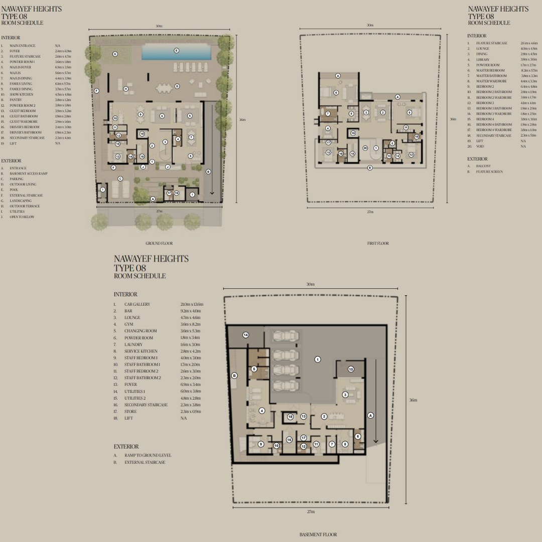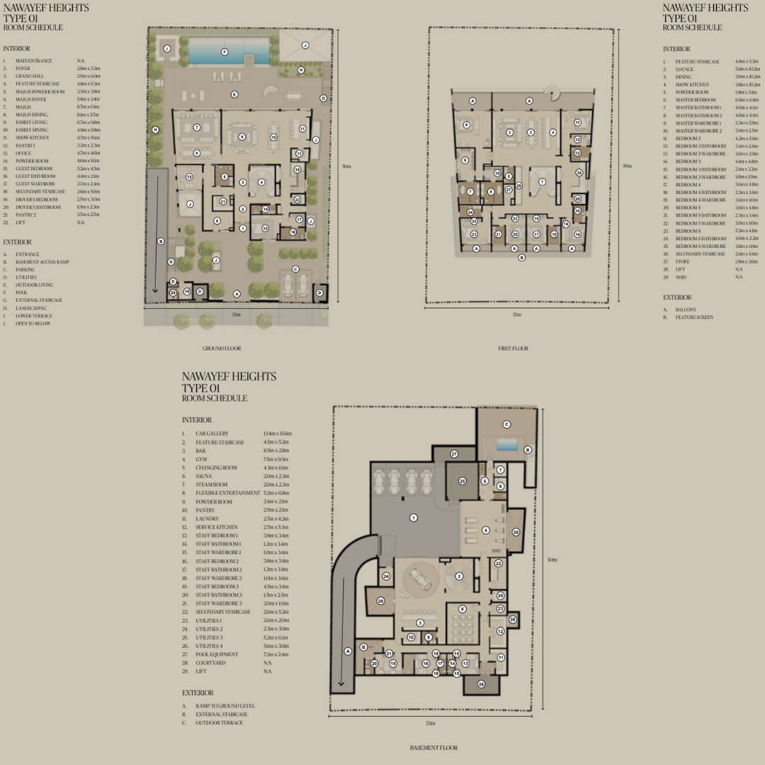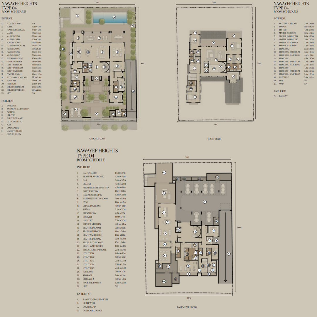 The development is composed of three curated collections: Mansions, Heights, and Homes. Layouts vary from 4-bedroom villas to grand 8-bedroom mansions, with spaces spanning 370 sqm to 3,800 sqm.