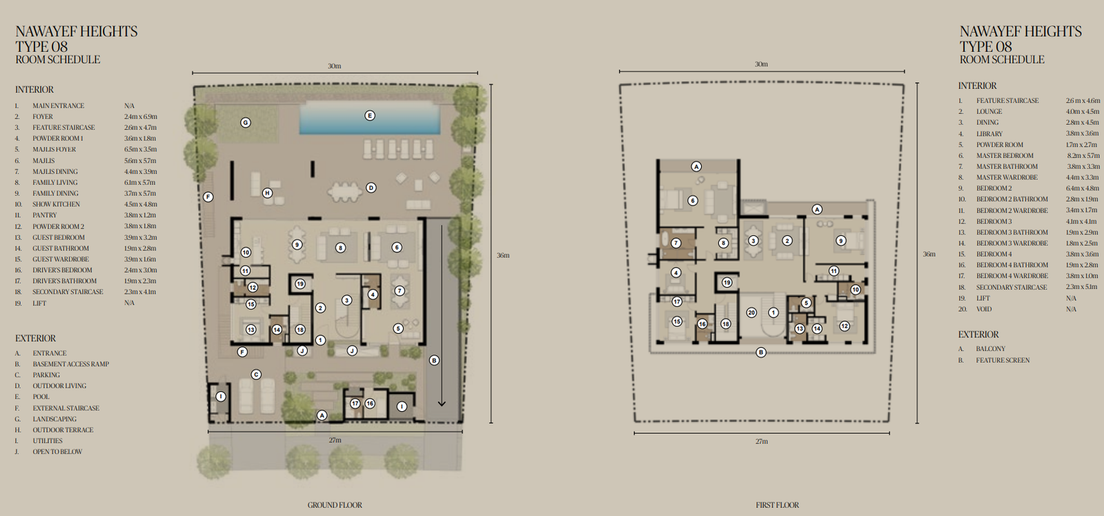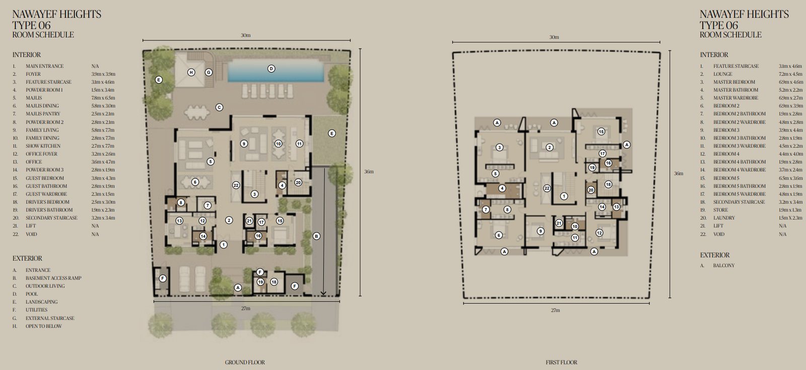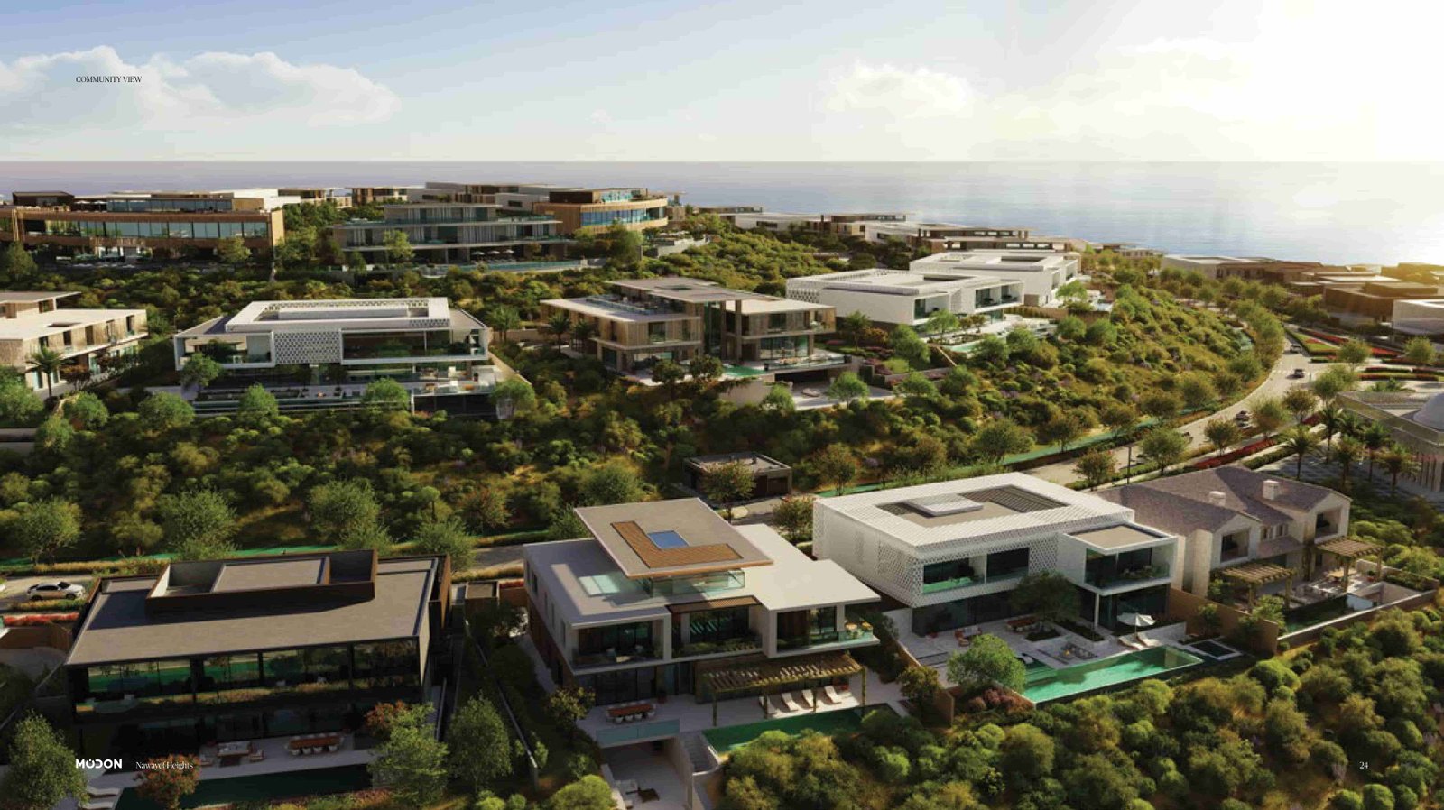 Architecturally, Nawayef West Hill pushes the boundaries of design and craftsmanship. The multi-level layouts include basements, private elevators, and bespoke features such as wine cellars, home cinemas, spa areas, and floor-to-ceiling glazing to flood interiors with natural light. Outdoor terraces and gardens blend seamlessly with the elevated terrain, ensuring every home has its own private sanctuary while remaining connected to the wider community.