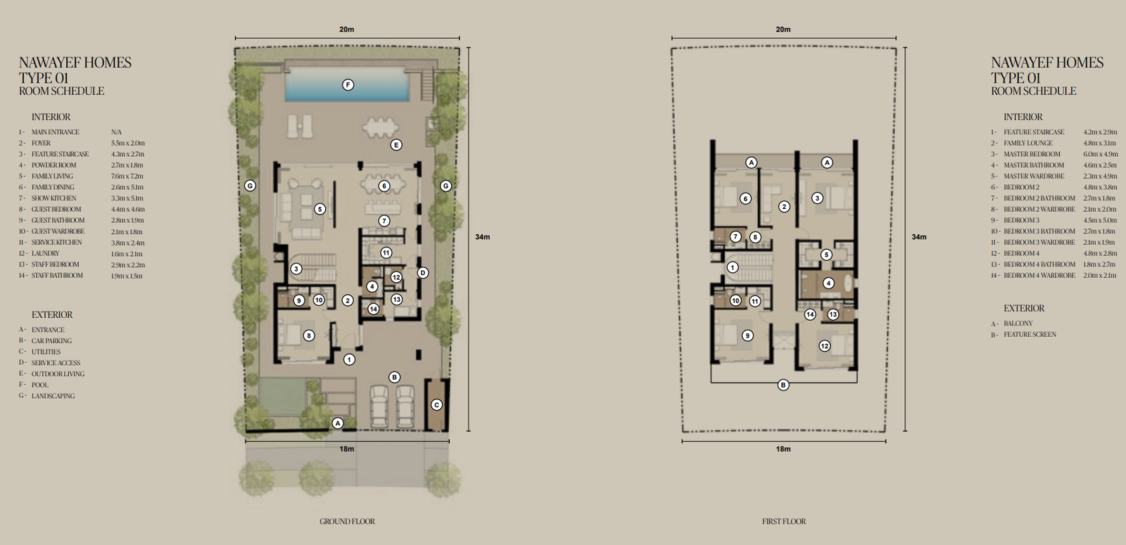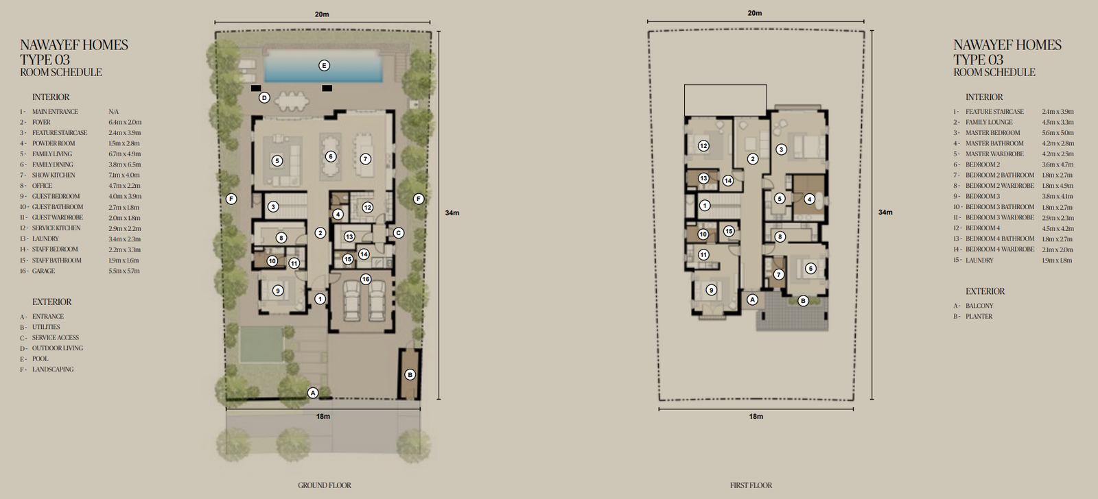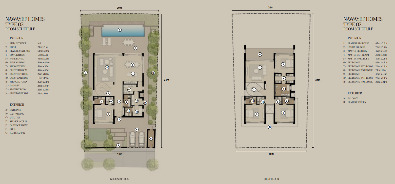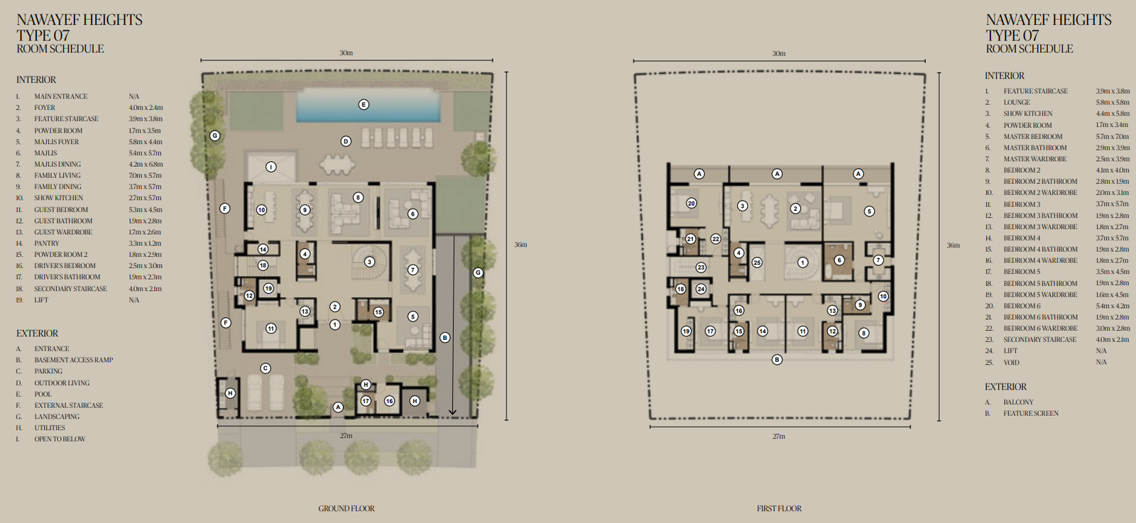 The Mansions range from approximately 18,138 to 29,063 square feet, the Heights Villas from 12,885 to 21,011 square feet, and the Homes from 3,983 to 5,038 square feet, each crafted to maximise privacy, light, and panoramic views.